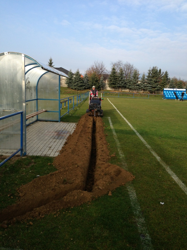 Umelá závlaha aj na našom ihrisku Naše ihrisko podstúpilo po poslednom kole jesennej časti k položeniu umelého zavlažovania. Zavlažovanie nám robila firma z Viničného a ihrisko bude zavlažovať nových 24 pukov rozmiestnených po celom trávniku.